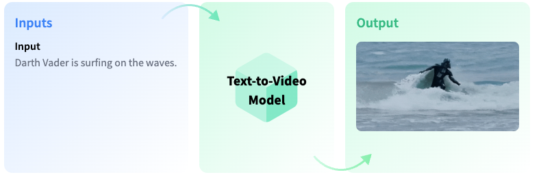Text-to-Video model concept, demonstrating the conversion from input (text) to output (video)