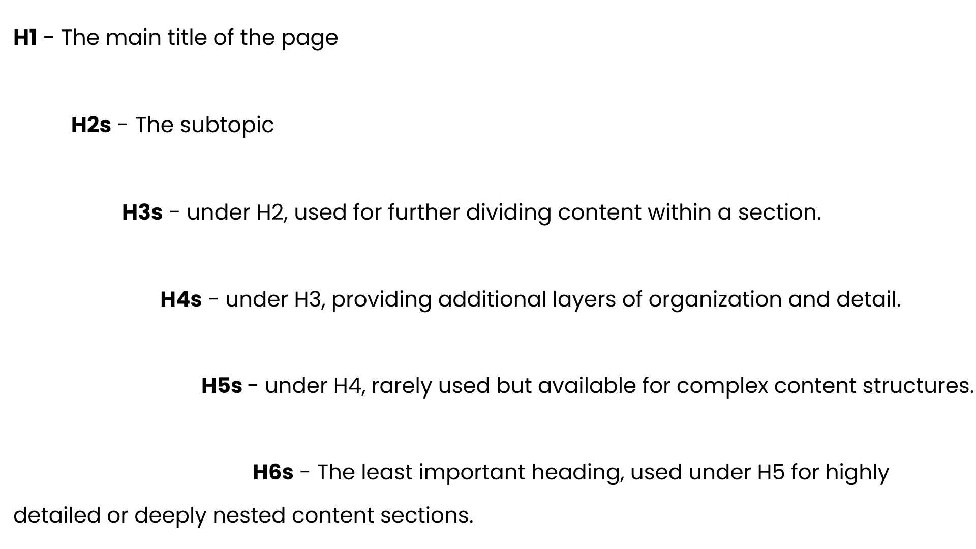 Headings H1 to H6 and their meanings
