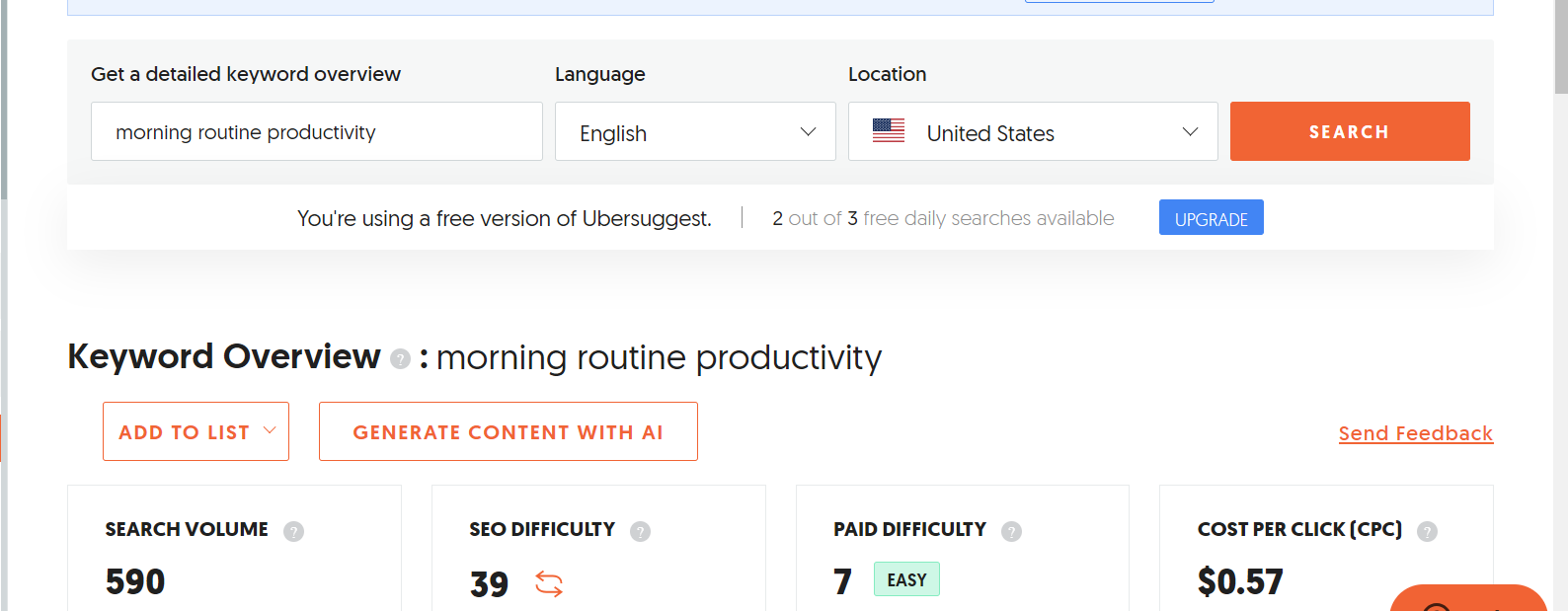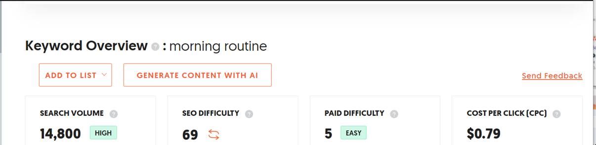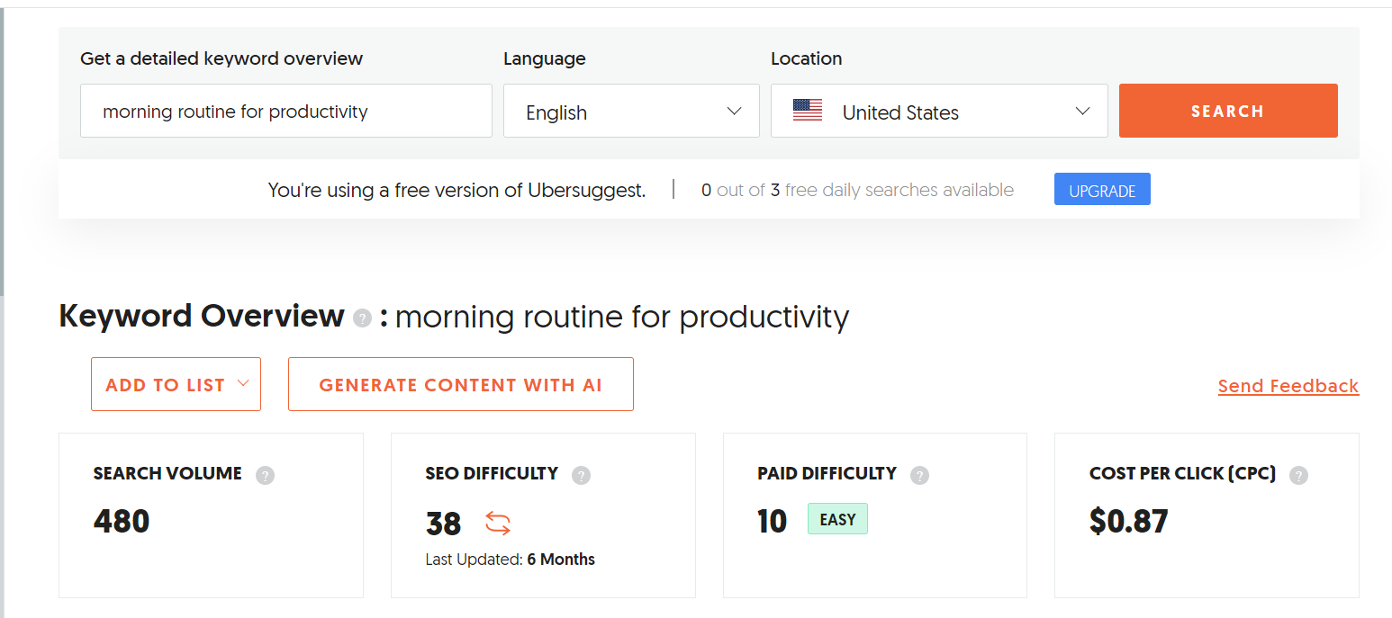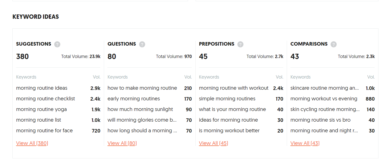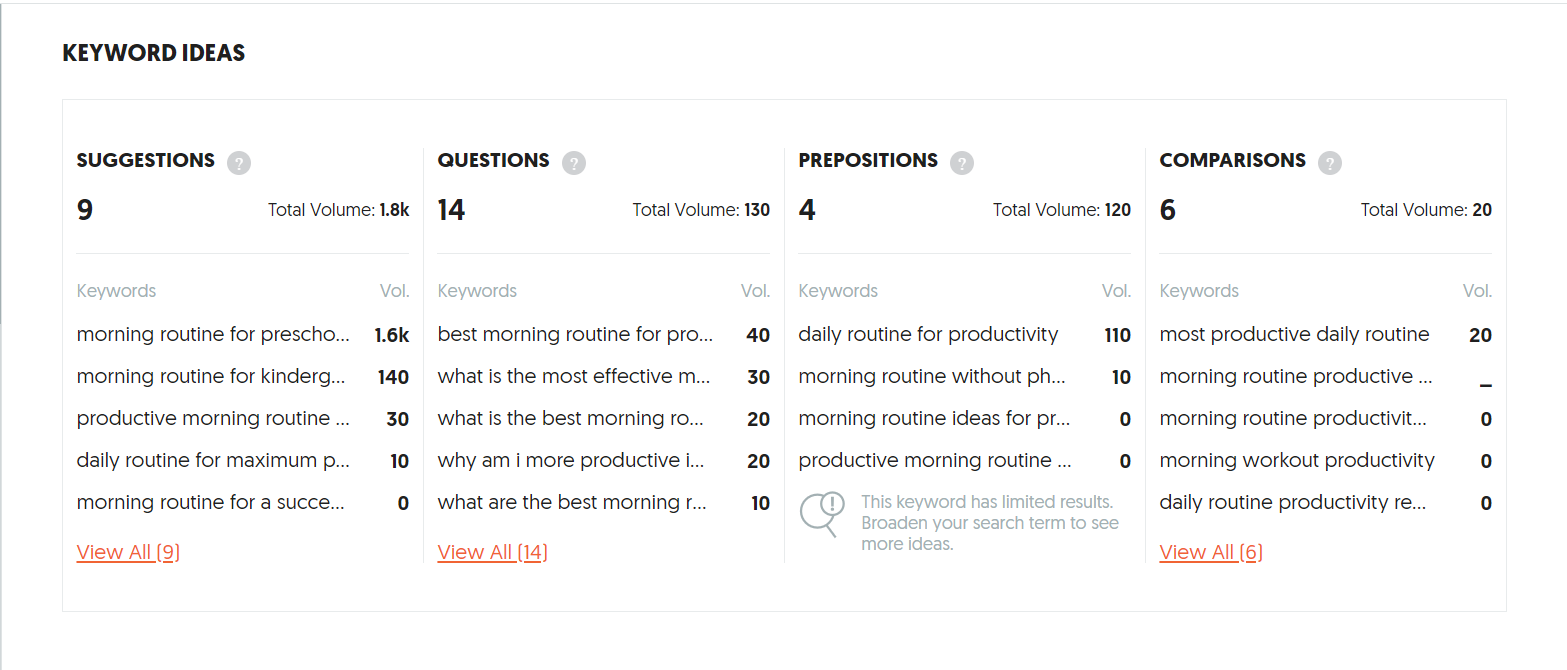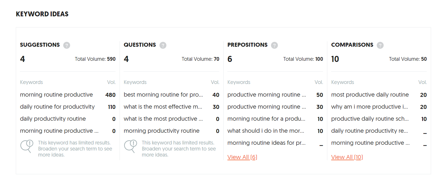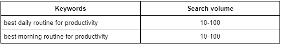 Initially, I considered general terms related to the topic when researching the primary keyword. For example, I tested terms like “morning routine,” “productivity,” “daily routine,” or “morning routine productivity.”