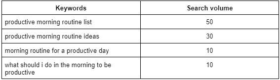 From the keyword ideas, I chose variation 2 - ”morning routine productivity.” This is because;
