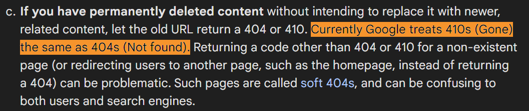 Which makes you wonder if they started to treat 410 errors the same as 404s. At the time of writing this article, I could not find proof they would.