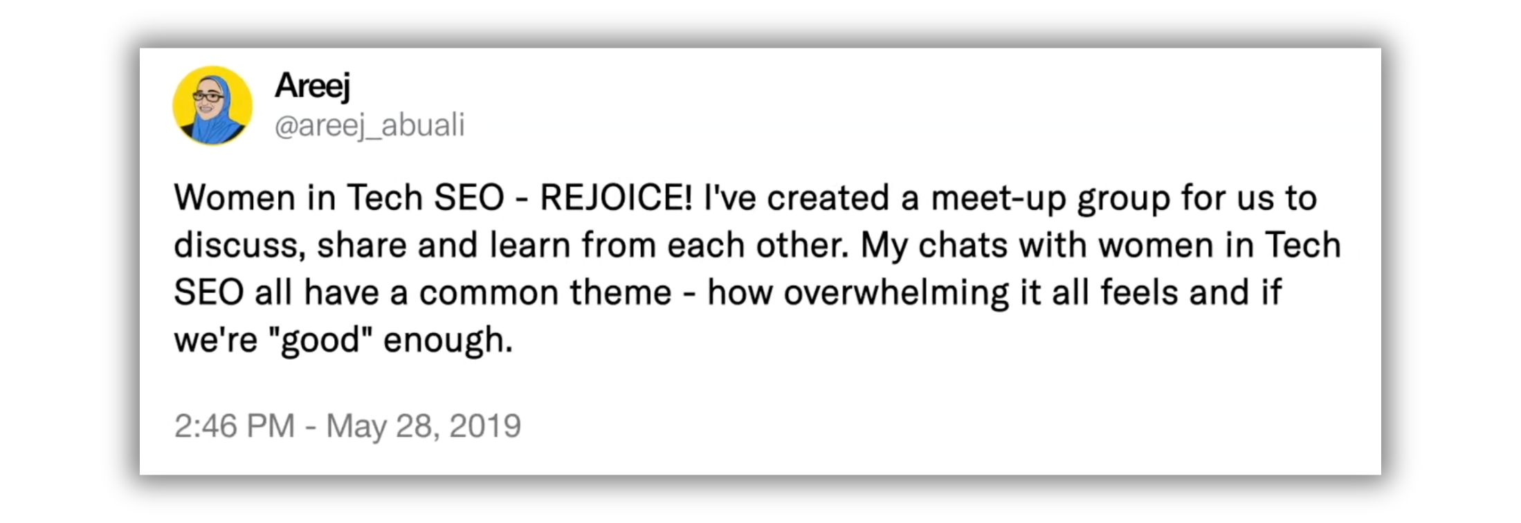 After feeling like she didn’t fully belong, Areej AbuAli started WTS to help people like her in Technical SEO grow, connect, and thrive in the industry.