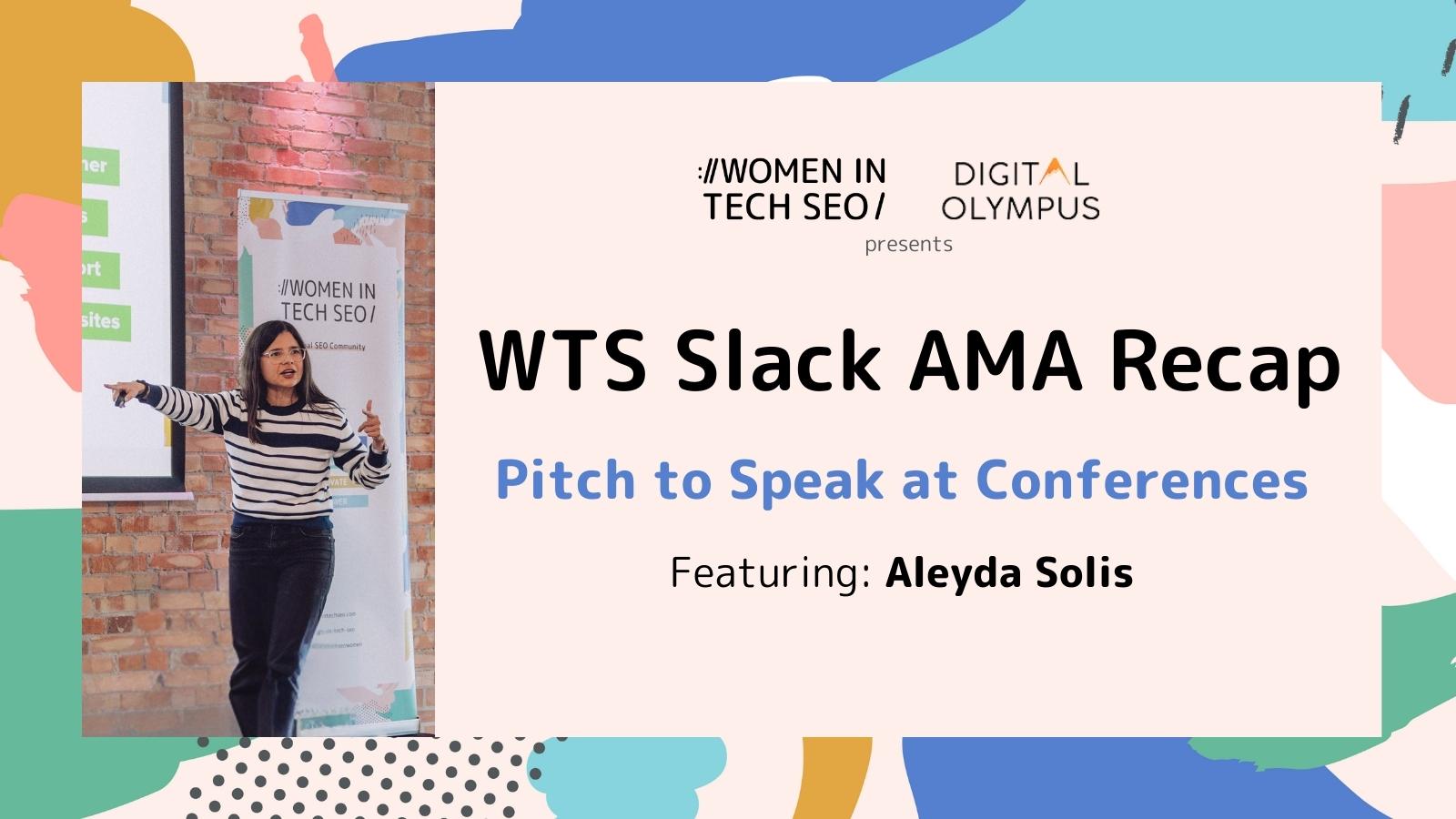For 1 hour, Aleyda answered WTS member questions posted in our #general-career channel about all things pitching to speak at conferences.