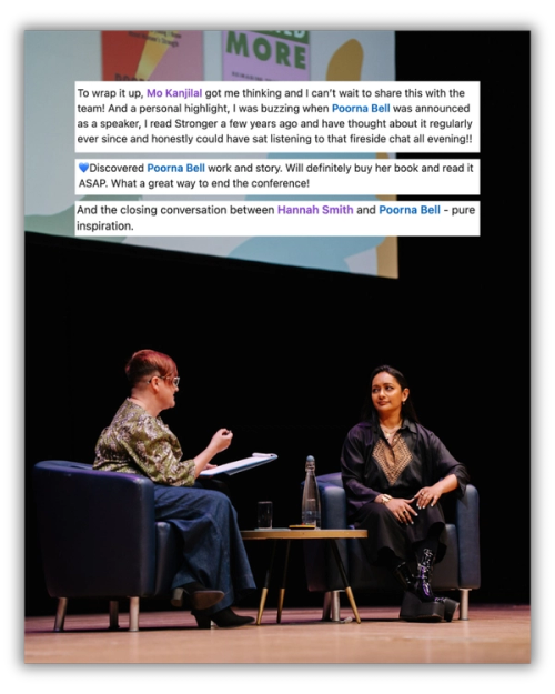 In our closing fireside chat hosted by Hannah Smith, Poorna reflects on redefining strength, navigating imposter syndrome - especially for those from marginalised backgrounds - and leading with authenticity.