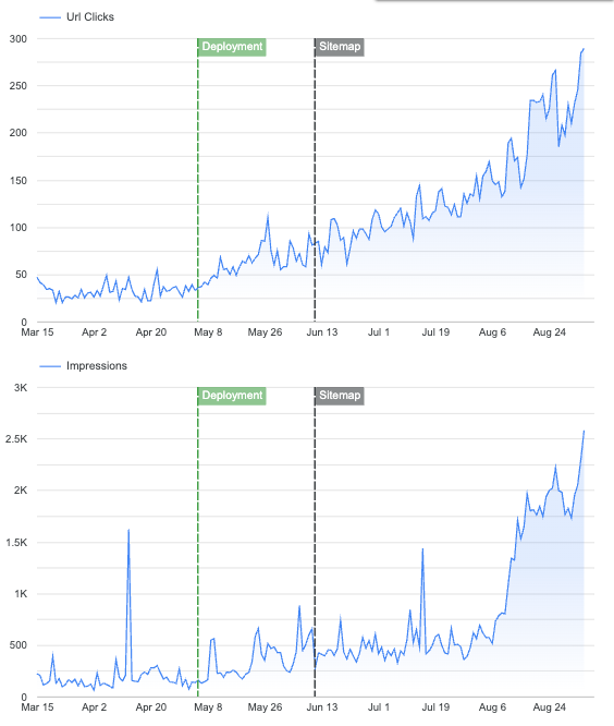 The result? Daily clicks grew x14 and impressions x5 times in a couple of months!
