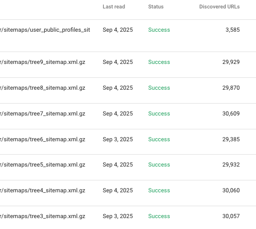 This was a pretty successful experiment, as, up to this day, Google is able to process all files within a couple of days (covering 3-4M pages), which is remarkable. In the past, some sitemaps used to remain unprocessed for weeks. So, for bigger websites, I have found that through experience, breaking your sitemaps down can ‘motivate’ the bot to crawl and discover more pages and more often.