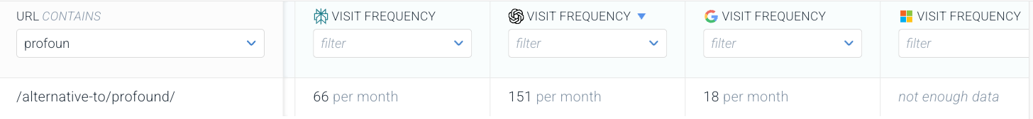 As you can see, Google has largely caught up to the answer engines in terms of crawl frequency, with Google desktop visiting the page a little more than Perplexity and a little less than ChatGPT each month.