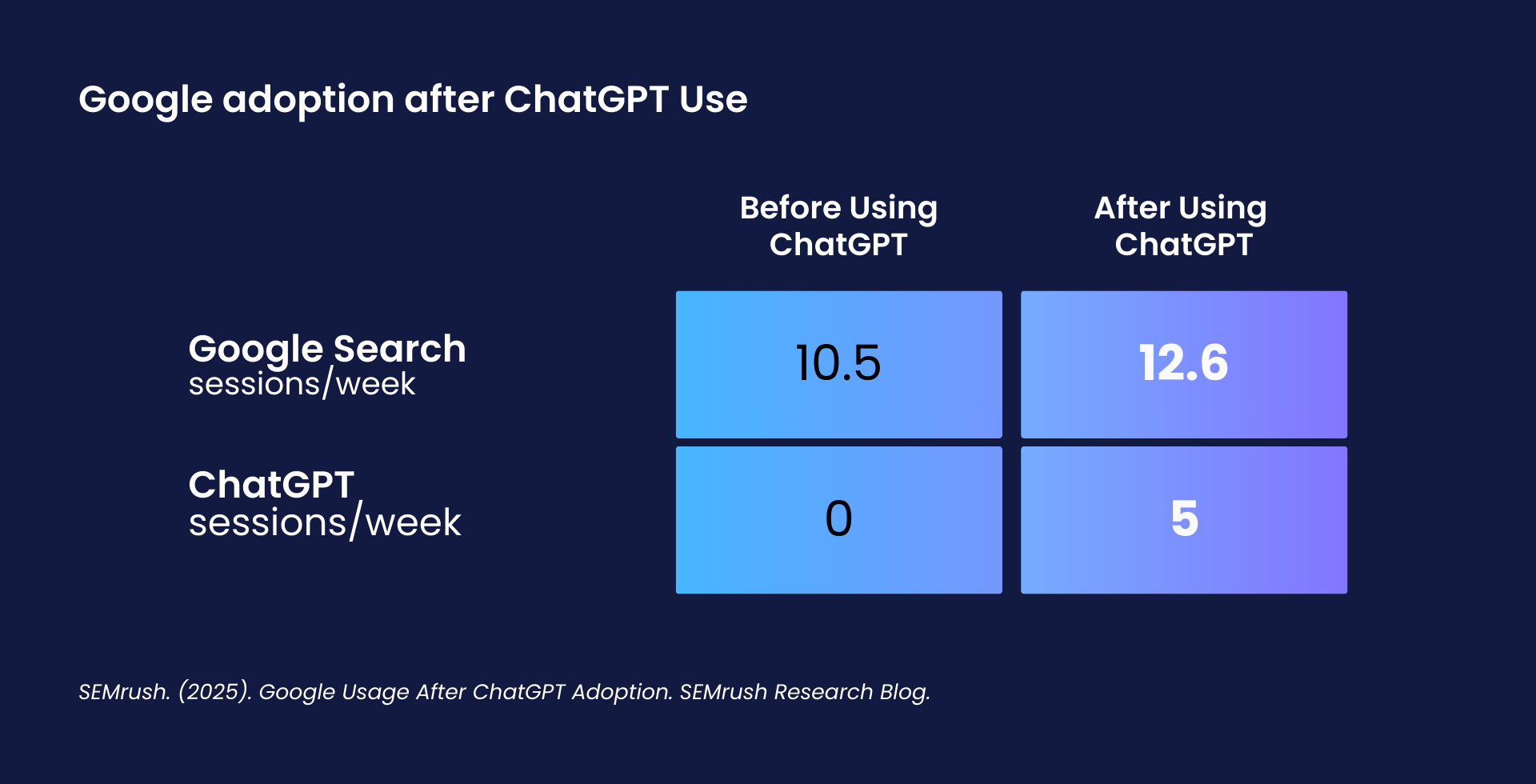 Alt text: Semrush research (2025) - Google usage after ChatGPT adoption
