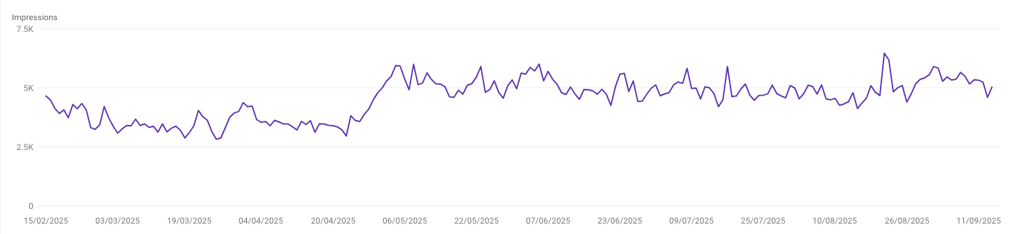 The graph below is taken from Google Search Console. It shows the increase in organic impressions following our PLP optimisation.