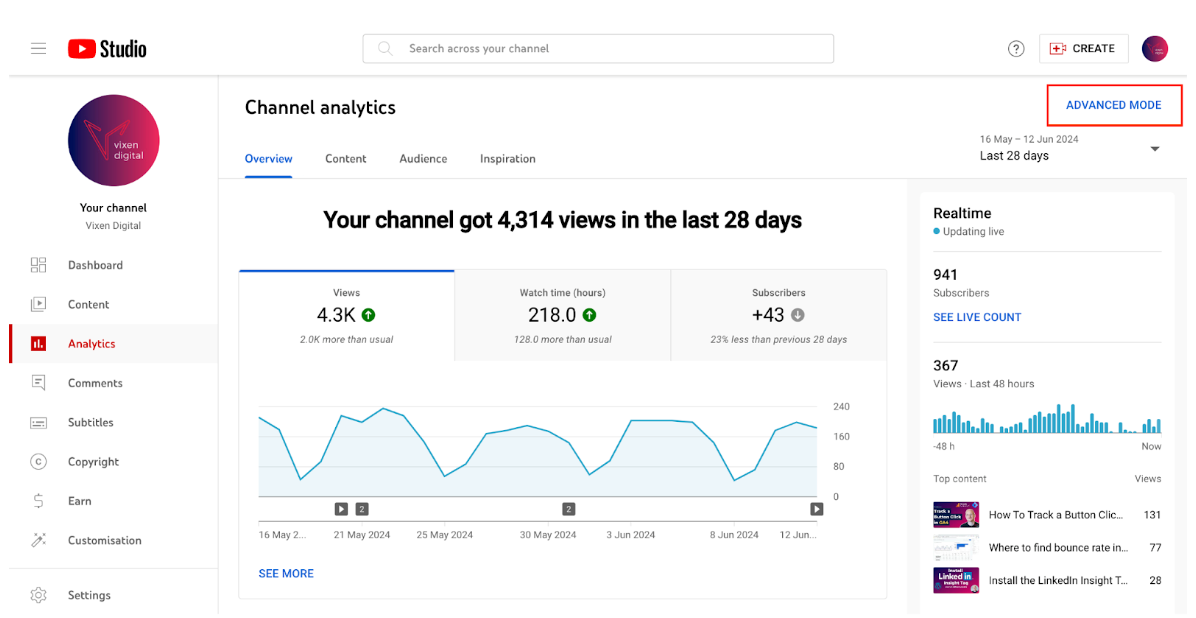 Step 2: Navigate to the Analytics section and click on Advanced Mode in the right corner