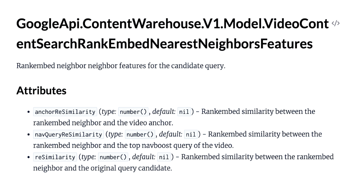 navQueryReSimilarity - This is where the user aspects come into play. Coming back to what we said about NavBoost queries being those which are enhanced by user data, this measures the RankEmbed similarity between the RankEmbed neighbour and the top NavBoost query of the video.