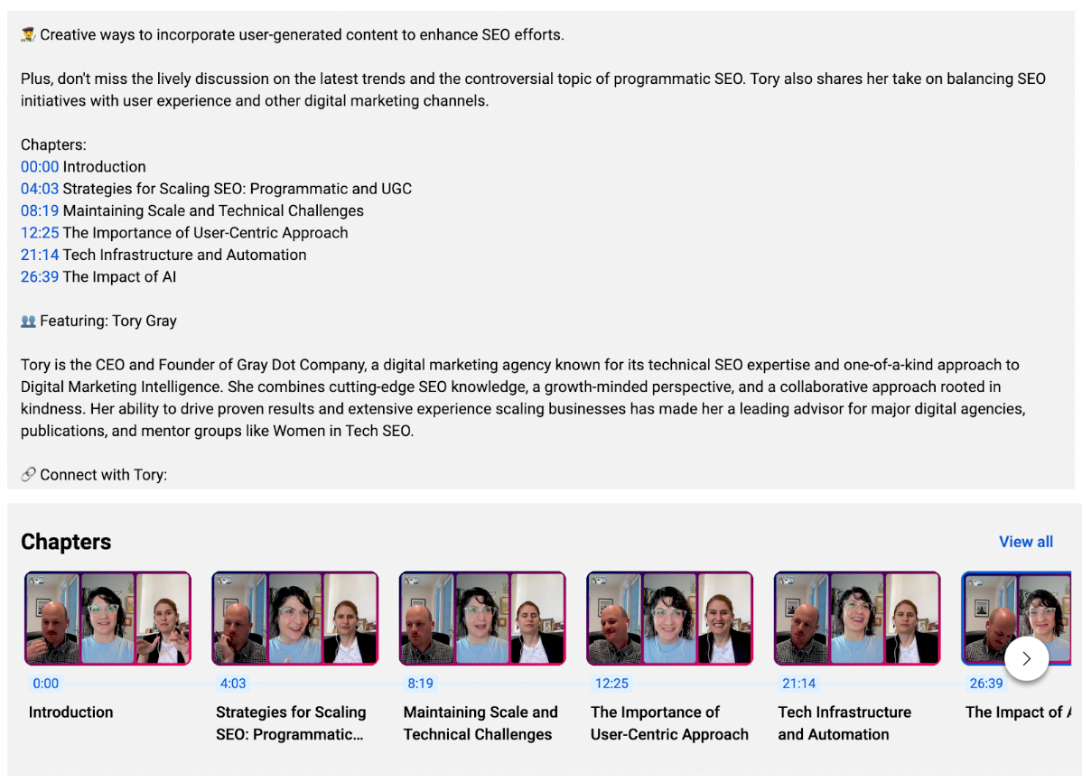 Make sure those keywords are included in spoken content, on-screen text, and subtitles. Then use timestamps in video descriptions to highlight key segments, making it easier for YouTube to identify and use these optimised anchors in search results.