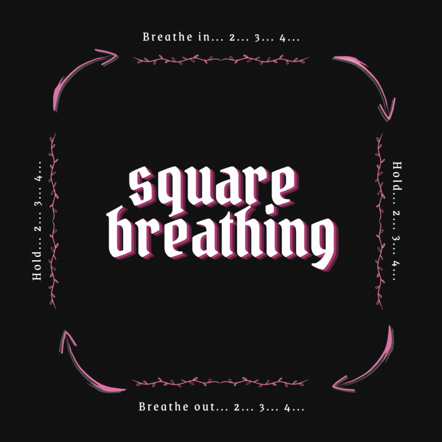 I know, I know, every self-help article says this. If you deal with anxiety or panic attacks, then square breathing is my number one recommendation to stop that in its tracks. Hereās a handy GIF for how square breathing works - just repeat for as long as it takes for your heart and brain to slow down a little bit.Ā