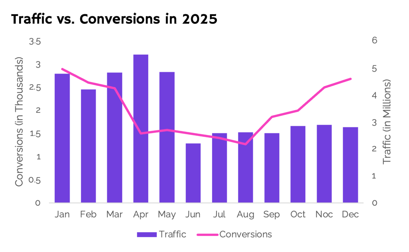 A visual showing two graphs, the first shows conversions, and the second shows traffic.